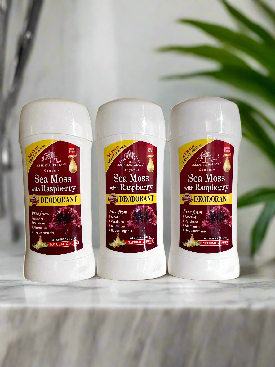 Organic Sea Moss with Raspberry Deodorant is Excellent for Bad Odors and it is Gentle on The Skin, Eliminates Rashes and Darkening of the Skin in the Underarms